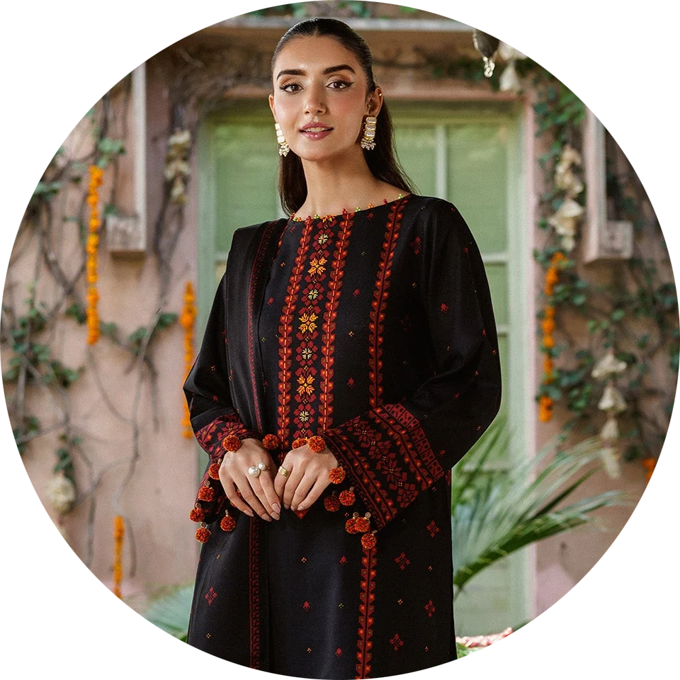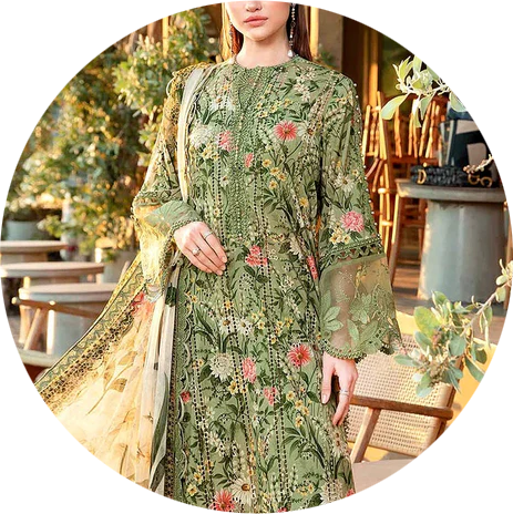 Ours suits reflects timeless elegance with a refined and graceful design. Delicate embroidery adds a touch of sophistication to the overall look. Soft lawn and cotton fabric ensure comfort with effortless style. The design blends classic beauty with modern fashion appeal.